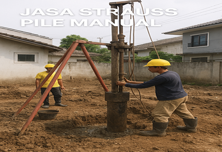 Strauss pile manual adalah metode pembuatan pondasi dalam menggunakan alat bor manual (stros) untuk membentuk lubang diameter tertentu sebelum diisi tulangan dan beton. Cara ini tidak menghasilkan getaran seperti mesin bore pile, sehingga sangat cocok untuk: